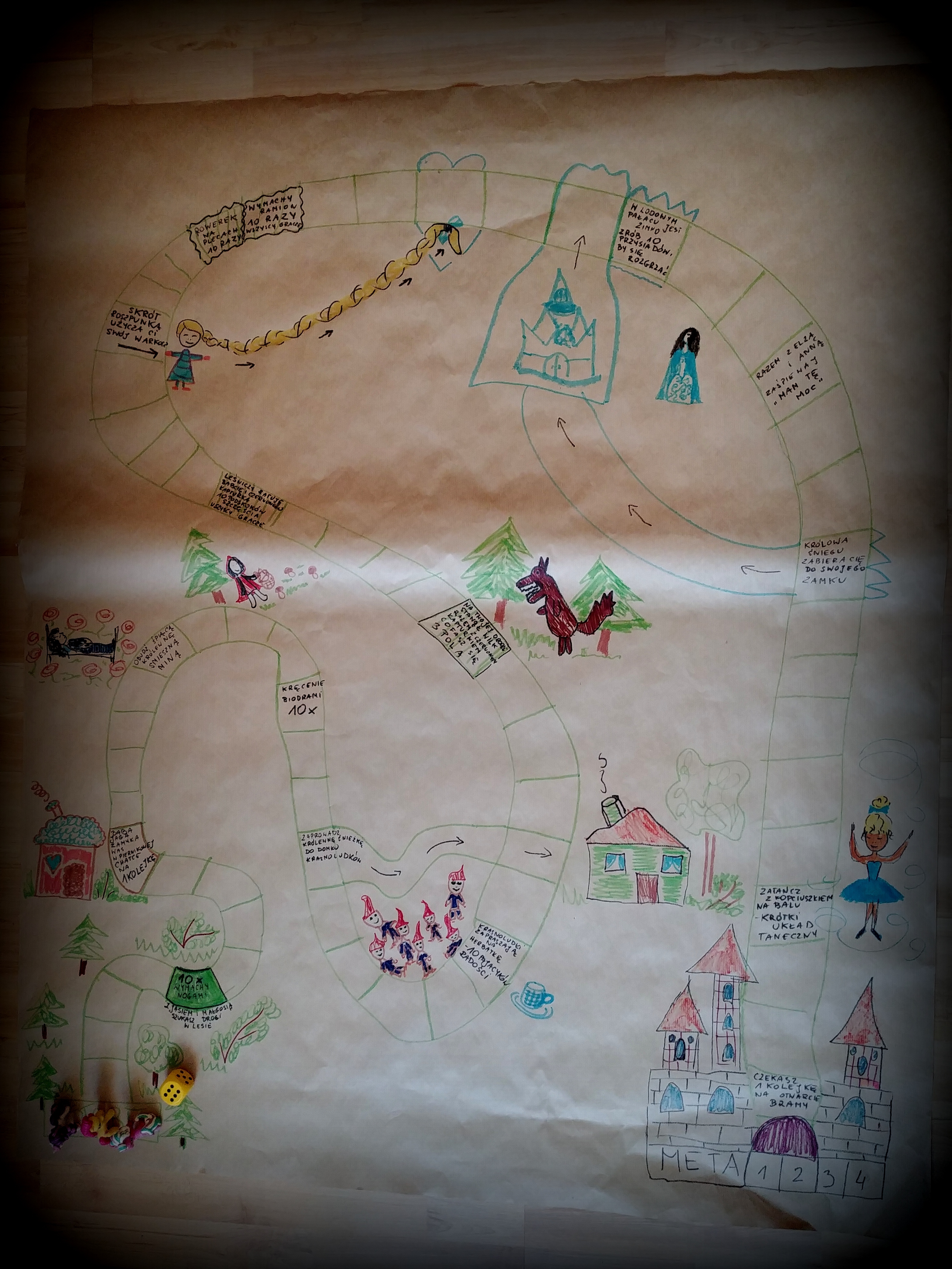 Wyrysujcie drogę waszych bohaterów, wymyślcie przeszkody, pułapki, tajemne przejścia i zabawne zadania. Tematyka gry może być przeróżna, np. bajki i baśnie, miasteczko Lassego i Mai, świat Baśnioboru, itd.