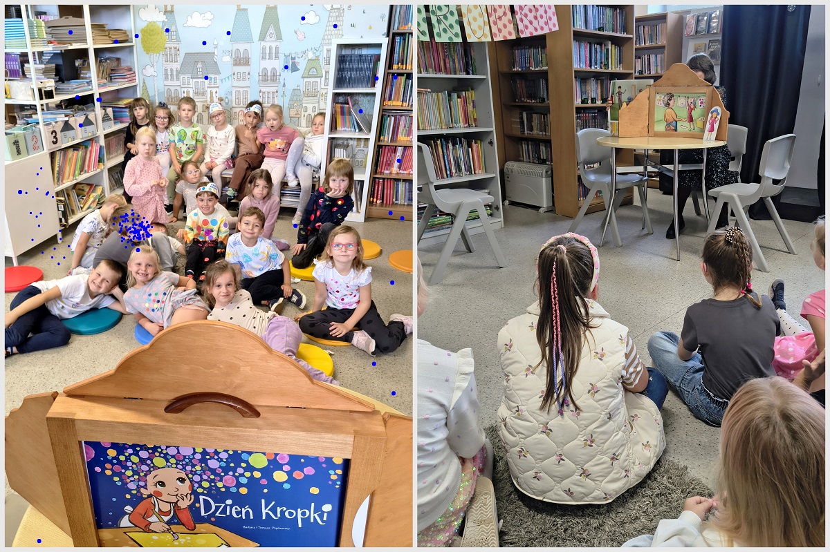 Pierwsze spotkanie z teatrzykiem kamishibai i Dzień Kropki w bibliotece szkolnej