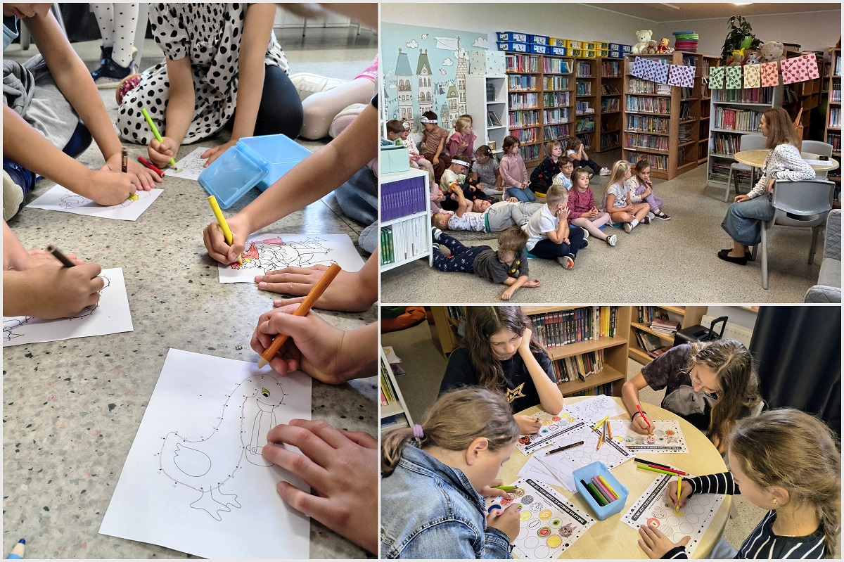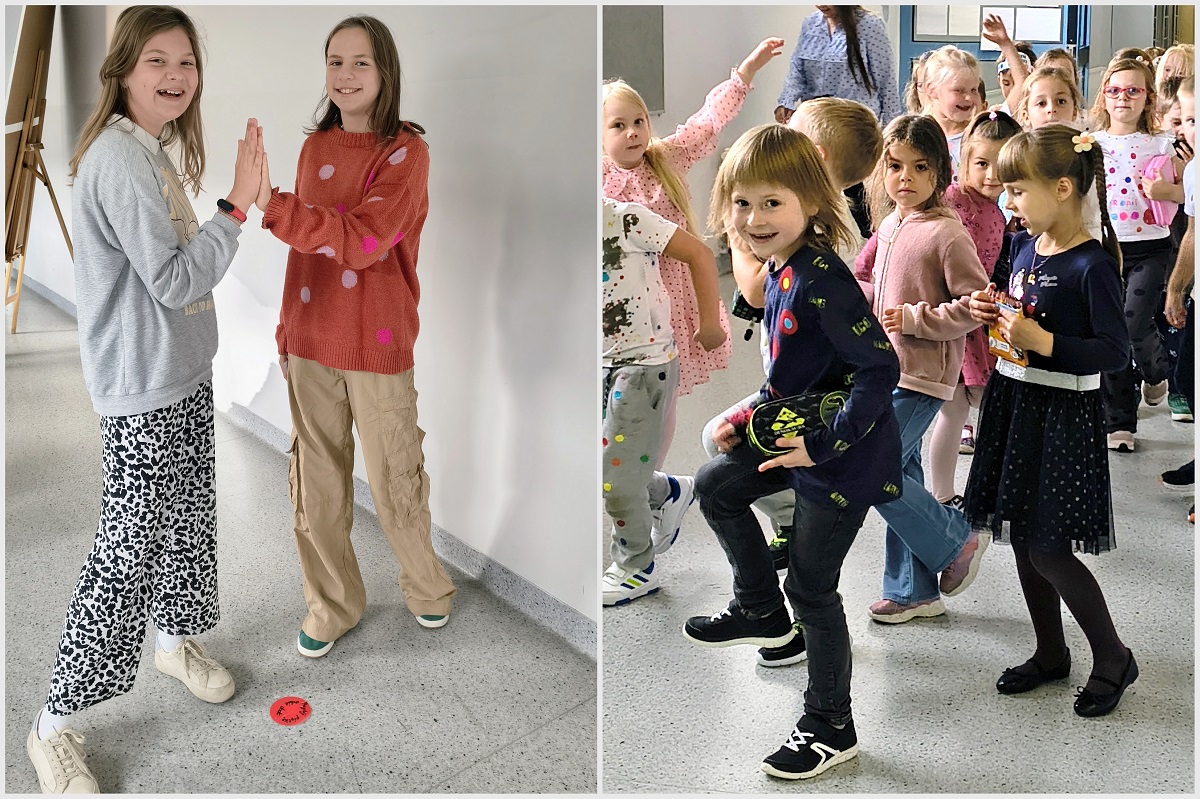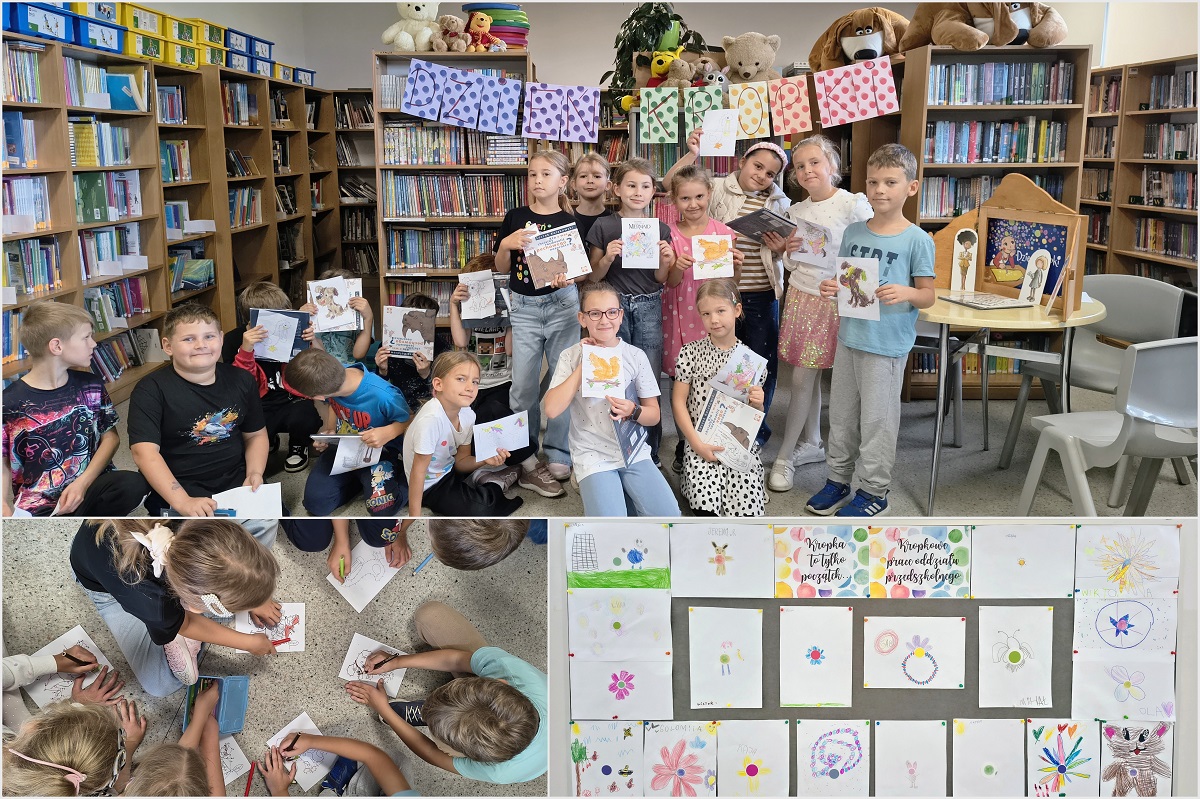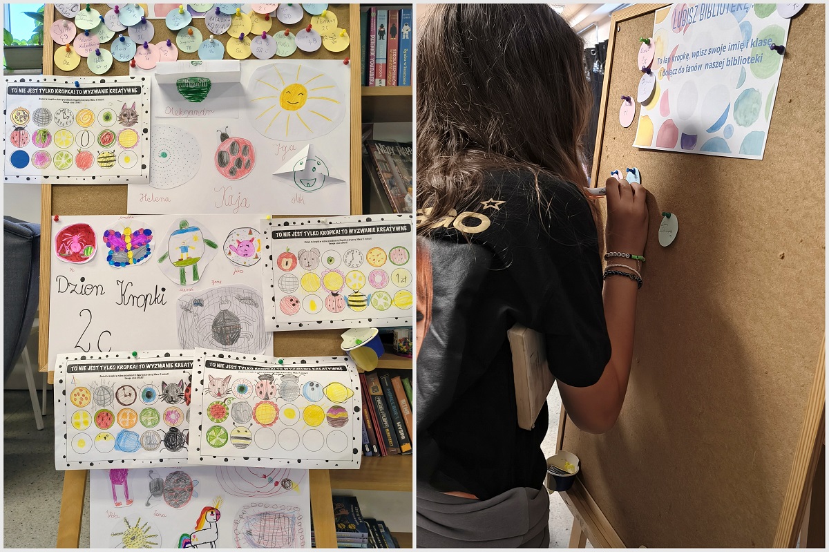 W Dniu Kropki bibliotekę odwiedziła również klasa IIc oraz uczniowie ze starszych klas. Aby dostać się do biblioteki musieli oni pokonać kropkową ścieżkę z zadaniami, a przy kreatywnym stoliku czekały na nich zadania rozwijające kreatywność i koncentrację.