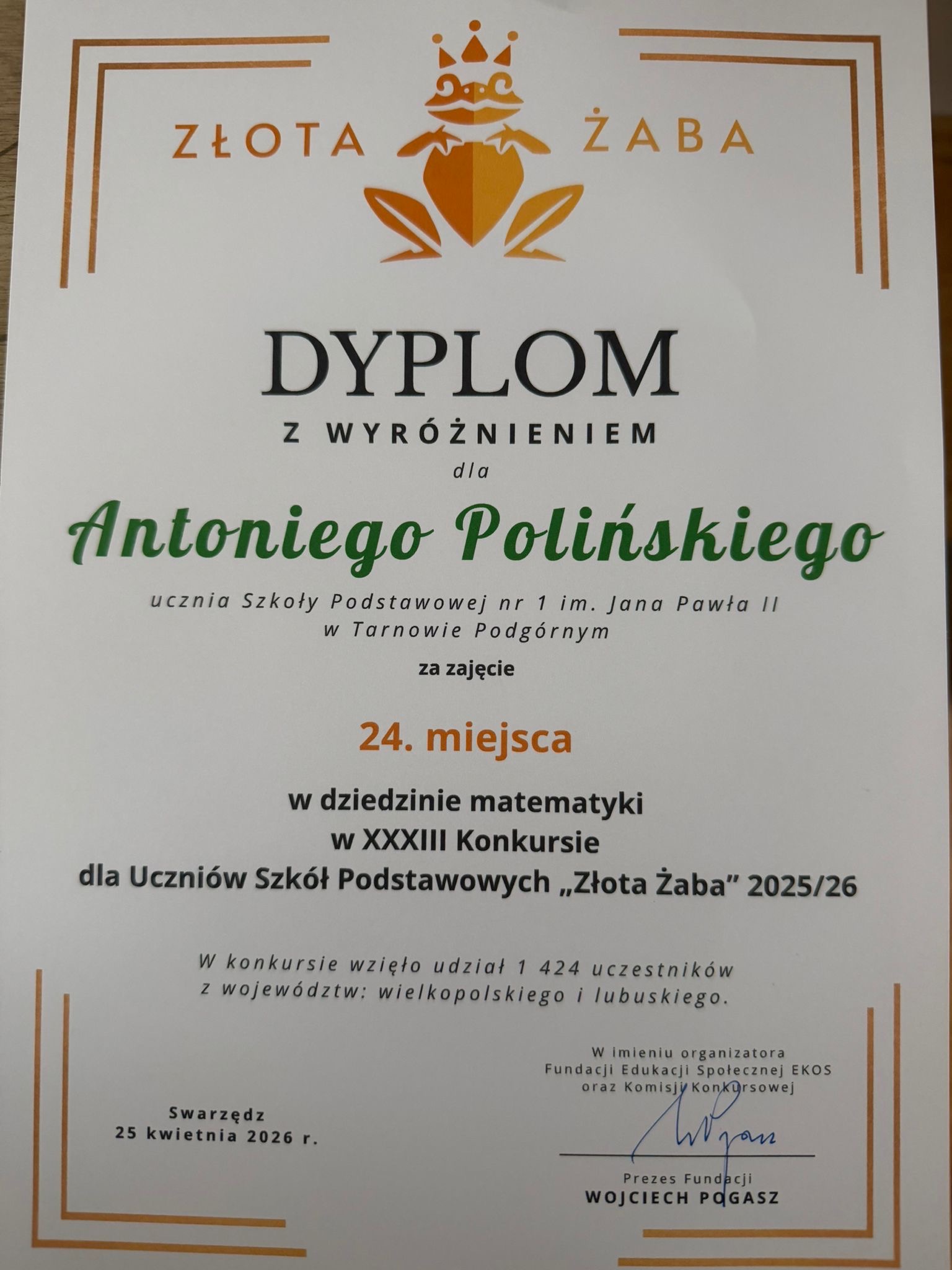 Nasi uczniowie wśród laureatów i wyróżnionych w XXXIII edycji Złotej Żaby!