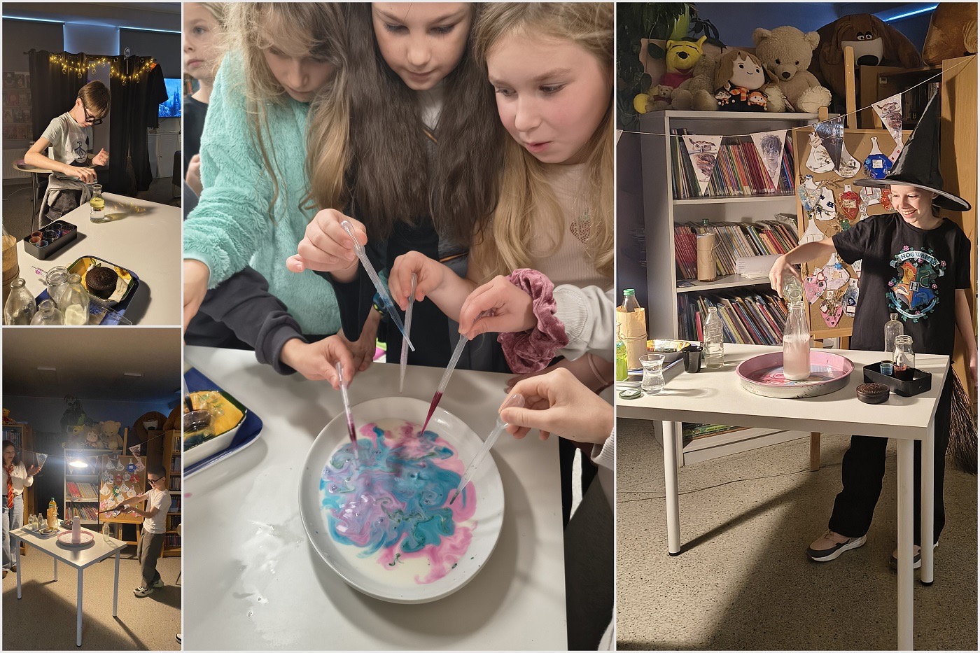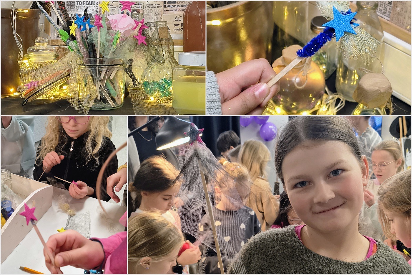 Nasz magiczny tydzień rozpoczął „Poniedziałek czarodziejów” - uczniowie zamienili się w alchemików i z zapałem tworzyli własne eliksiry – pełne barw, tajemniczych składników i odrobiny brokatu. We „Wtorek zaklęć” każdy mógł stworzyć własną różdżkę. W „Środę mądrości” czekał na uczestników QR-owy quiz o Harrym Potterze. By sprawdzić swoją wiedzę o świecie magii, trzeba było nie tylko znać odpowiedzi, ale też odszukać ukryte kody w bibliotece. „Czwartek zagadek” to był dzień dla prawdziwych mistrzów logiki - uczniowie rozwiązywali potterowe łamigłówki i zagadki.