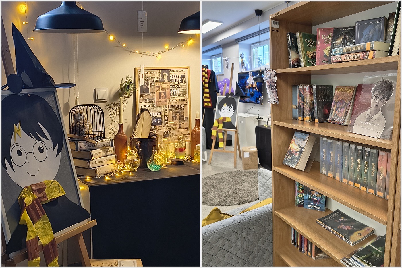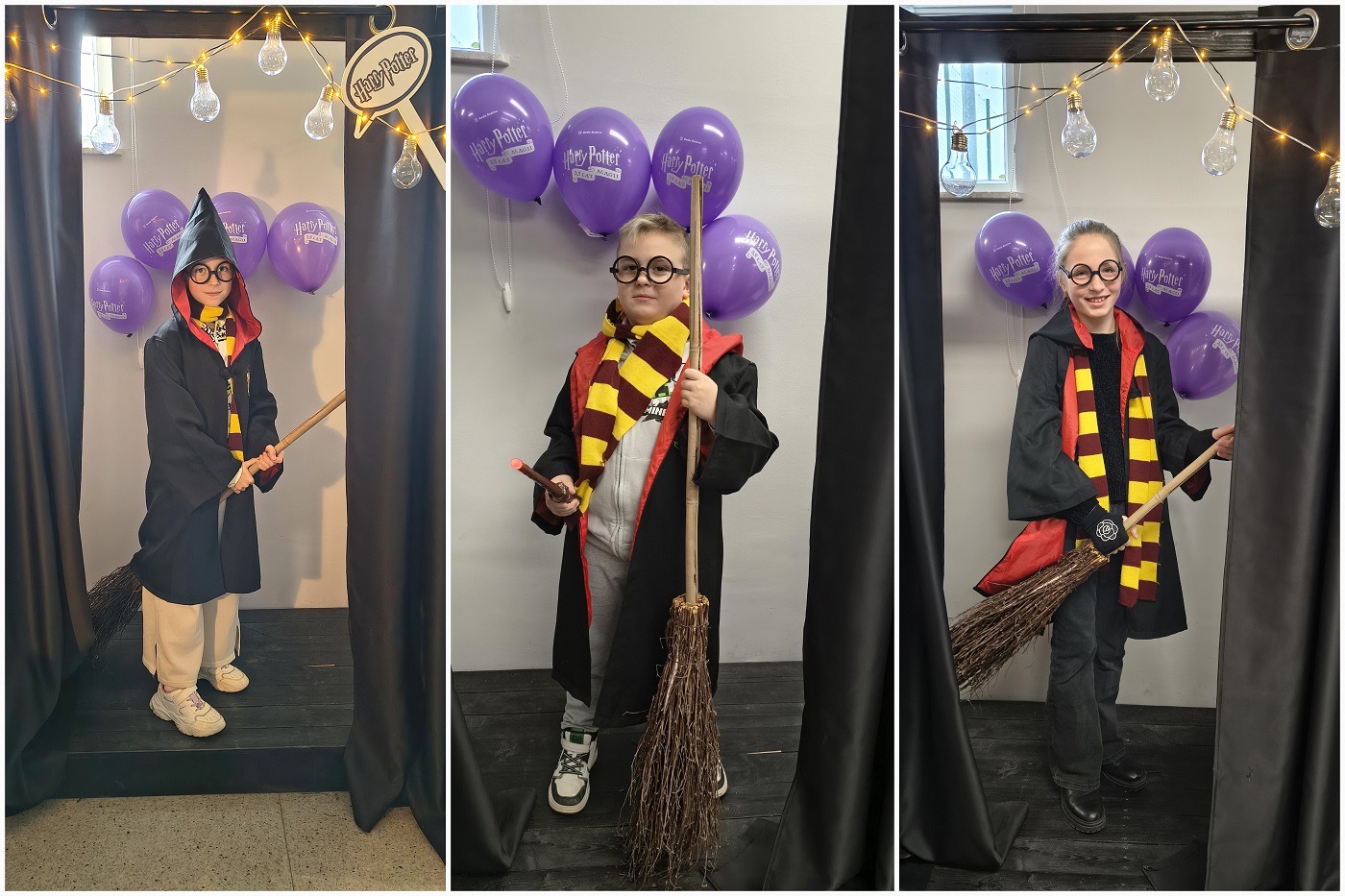 Nie zabrakło też innych atrakcji: w naszej bibliotece odbył się emocjonujący mecz quidditcha, a w magicznej fotobudce każdy mógł wcielić się w Harry’ego Pottera. Ogromnym powodzeniem cieszyła się też zabawa „Przyczep błyskawicę Harry’emu.